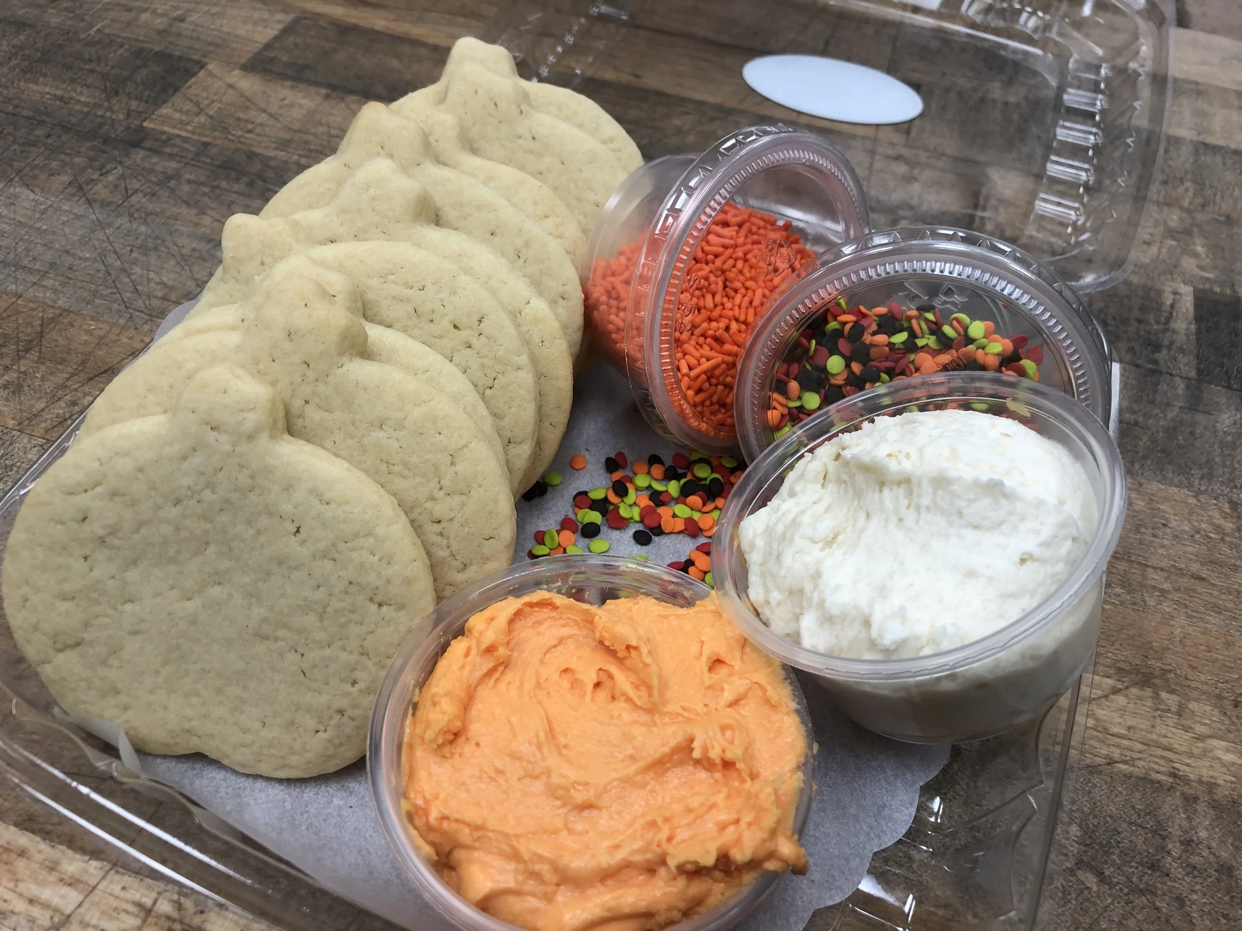 Bring the frosted sugar fun home with our cookie decorating kits! Comes with 9 unfrosted sugar cookies, sprinkles and frosting.